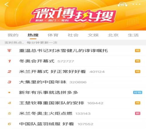 7日上午,“冬奥会开幕式”和“米兰开幕式 好正常好好看”“中国队蓝羽绒服 好看”也登上微博热搜。