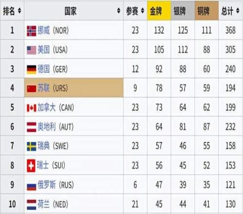 (冬奥会历史奖牌榜,图:Wiki)▼