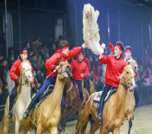 2026年1月24日,新疆古生态园,人们正在进行传统的叼羊比赛。视觉中国 图