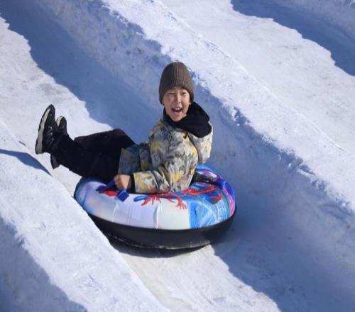 2026年1月31日,新疆阿勒泰,小朋友在城市公园体验滑雪圈等冰雪娱乐项目。视觉中国 图