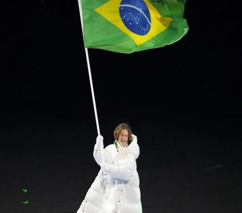 在清一色的长款大衣阵营中,巴西队的这种短装造型极具辨识度,被不少时尚博主评价为:“这是本届冬奥最时尚、最有挑衅意味的造型。”