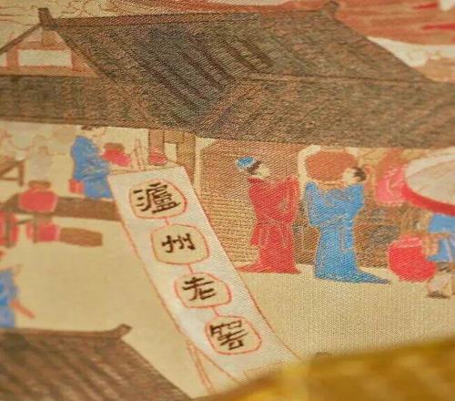 这件作品叫做“福桂满江阳” ,里面栩栩如生的人和物灵感来自描绘泸州酿酒文 化的 《江阳运酒图》。