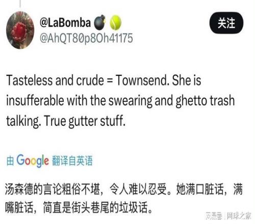 WTA250奥斯汀站,美国选手汤森德以7-6(6) 6-3击败克鲁格,职业生涯首次跻身巡回赛单打决赛。然而,比起这场来之不易的胜利,她赛后那一番疑似含沙射影的“回怼”宣言,却在中国球迷群体中引发了新一轮的口诛笔伐。