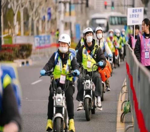 315名急救志愿者和120名急救跑者分布在各关键位置,他们既能第一时间发现异常,也能在奔跑中陪伴和鼓励选手。
