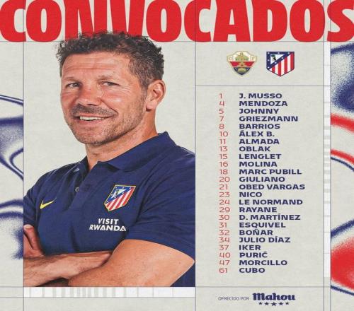 马竞客战埃尔切大名单: